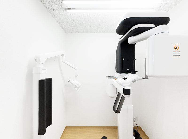 CTスキャンを用いることで、骨格を三次元画像として表示し、主要な神経や血管の位置を同時に確認することができます。また、顎骨の幅や高さを把握することで、インプラント埋入に必要な骨量の不足を評価することが可能です。 -