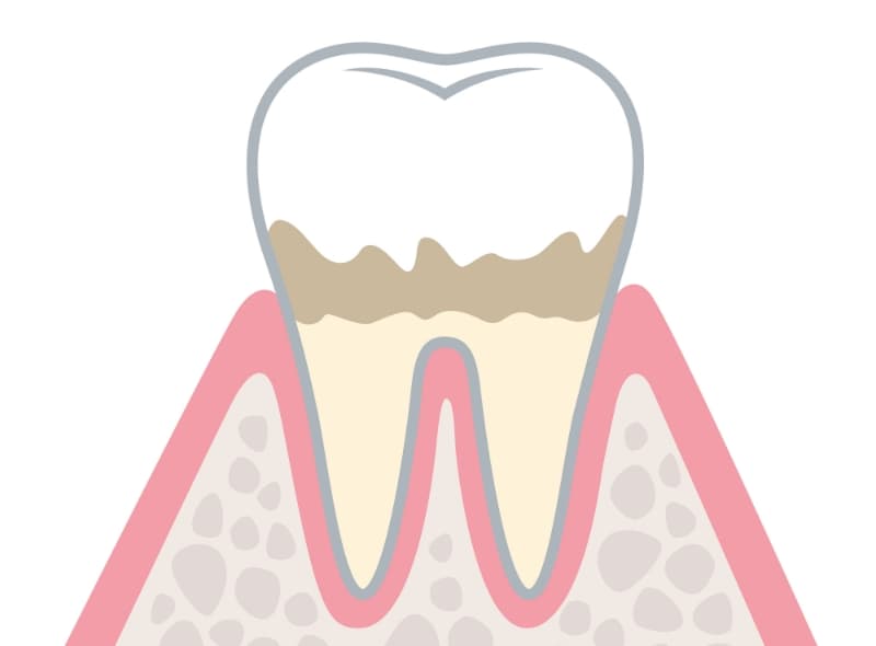 歯肉に炎症があり、ブラッシング時に出血することもありますが、歯槽骨の吸収はまだ進んでいません。この段階で受診すれば、治療の負担を最小限に抑えられます。